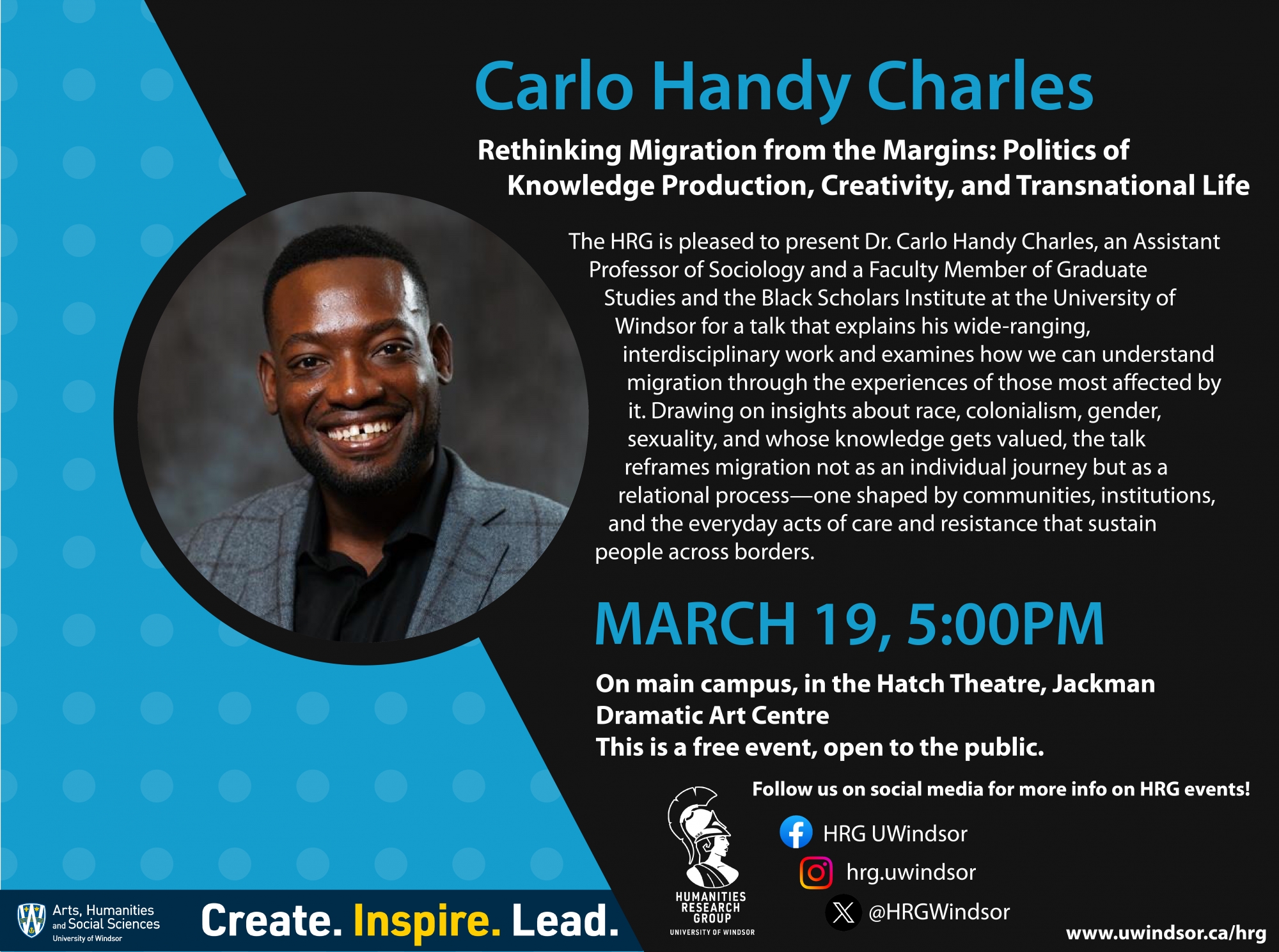 The Humanities Research Group is an interdisciplinary council comprised of University of Windsor faculty, students, staff, and community members, who support humanities research and facilitate events where thinkers and audience members grapple with issues relating to the human condition.