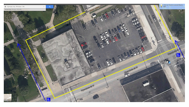 Barrier free crosswalks are located on the west side of Patricia and Wyandotte; the intersection of California and Wyandotte; and the east side of Sunset and Wyandotte.