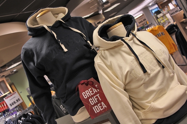 A sweatshirt with “University of Windsor: est. 1963” appliquéd across the chest was the best-selling item of apparel at the Campus Bookstore this year, reports manager Marianne Nitz.