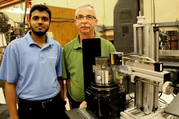 Shanawaz Ali Mohammad, a former master’s student in electrical and computer engineering, helped design a custom measuring machine that relies on lasers to ensure that a clutch hub, an important component in automotive transmissions, meets precise specifications as it comes off the assembly line.