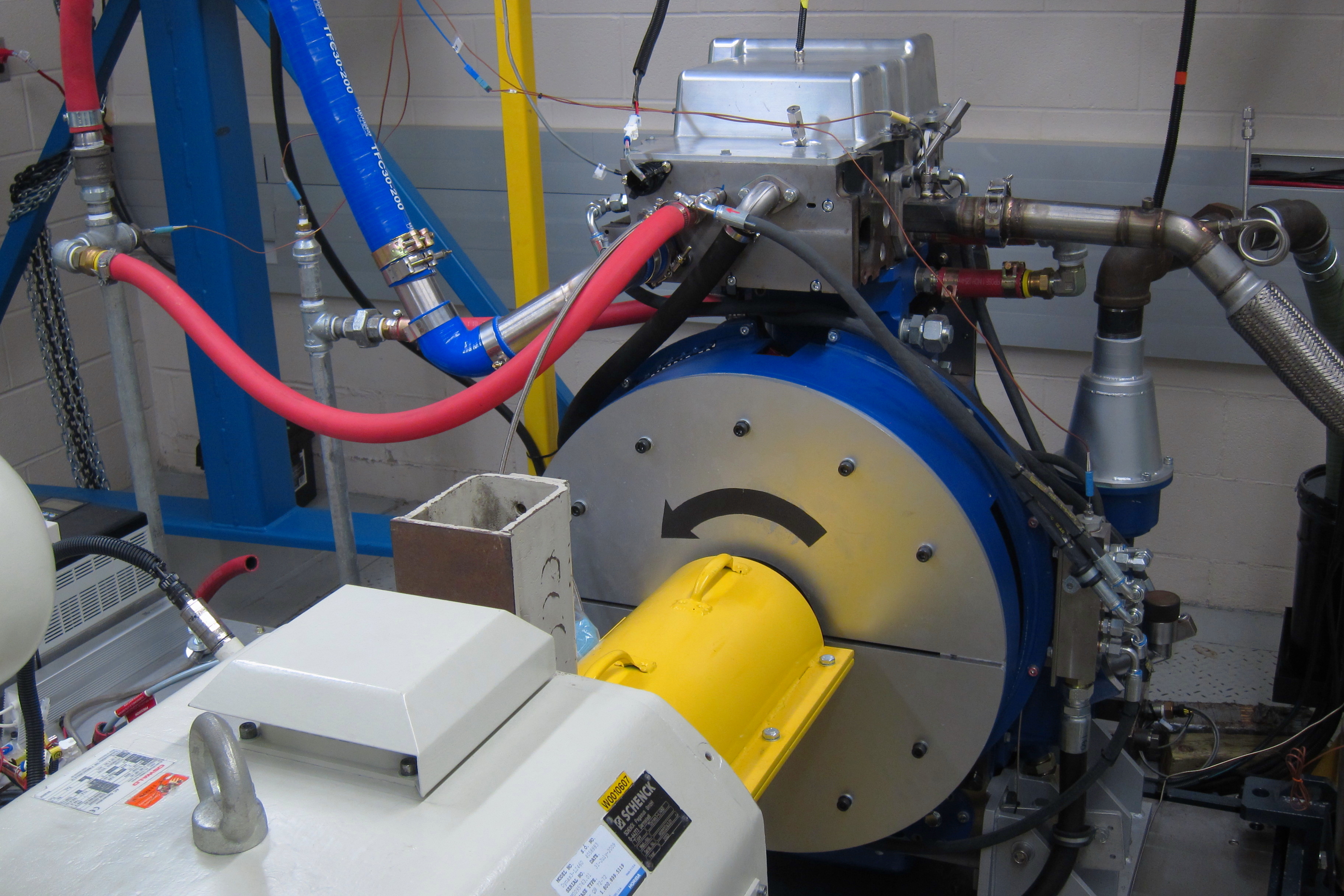 The FEV single cylinder research engine and Yanmar NFD 170 engine are connected to a 40 hp direct current (DC) double-ended motoring engine dynamometer. The FEV engine has a research single cylinder block mated to a production cylinder head. Customized pistons can be used in this research cylinder. The research conducted on this engine includes combustion chamber shape studies, compression ratio variations studies and fuel impact studies.