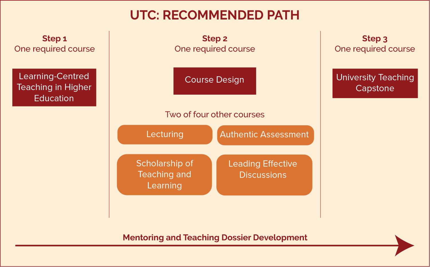 The University Teaching Certificate (UTC) Program is designed to help faculty members, sessional instructors, and post-doctoral fellows, at all levels and in all disciplines, develop their teaching practice, with the goal of enhancing student learning. Both practical and theoretically-grounded, the UTC seeks to engage instructors in areas including course design, teaching practices, leadership, scholarship, and assessment, inspiring reflective, critical, evidence-based practice.