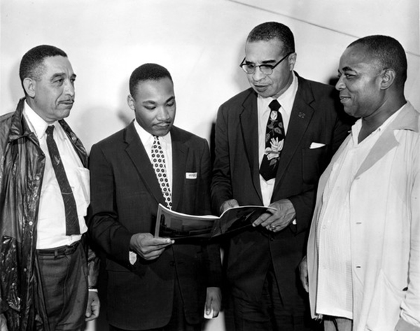 Martin Luther King Jr. addressed the 1956 Emancipation Day celebration. From left: Russel Small, King, Theodore Boone, and Walter Perry.
