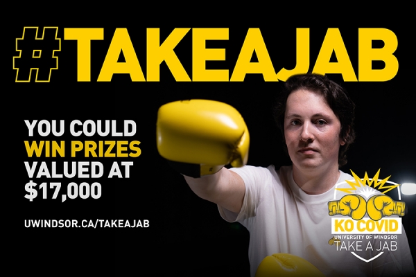 To enter weekly draws, “like” a post on the UWindsor Facebook or Instagram accounts with the #TakeAJabUWindsor or #KOCOVID hashtag, explaining why you decided to get the COVID-19 vaccine.