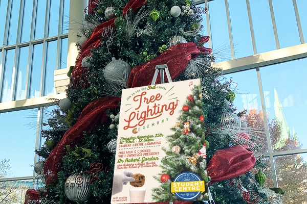 The annual ceremony to light up the tree in the student centre is back and will mark the official start of the festive season on Thursday, Nov. 25, at 10:15 a.m.