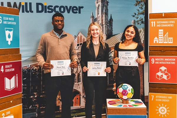 Richard Nonso, Lindsey Boshart, and Madysyn Blackburn earned recognition for their presentations at last year’s UWill Discover student research conference.