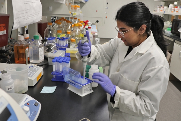 Karen Metcalfe, Blake and Mckenna Lumley in the CORe atrium at the University of Windsor.