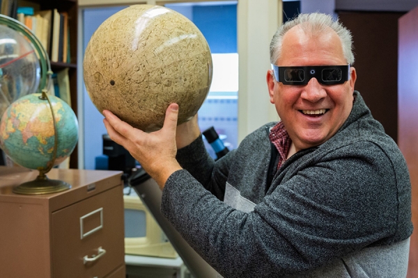 Chemistry lab technician Una Lee places disposable rubber gloves in a collection box for recycling.