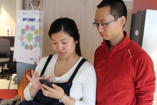 Expectant parents Queena Zhang and Todd Liu check out the When You Need It app following its release Thursday.