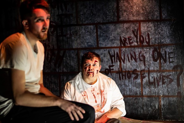 Joey Wright and Eric Branget star in “The Pillowman,” directed by UWindsor staffer Michael K. Potter. Photo by Jen Gurniak.