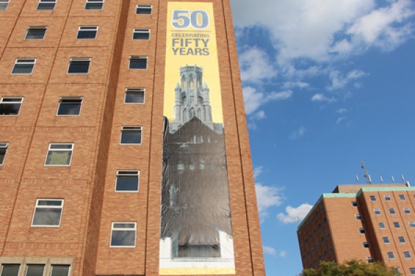 Banners like this one promoting the University’s 50th anniversary year have come down across campus.