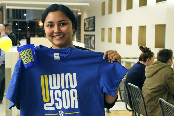 Free buttons from the Office of Student Experience display UWindsor pride.