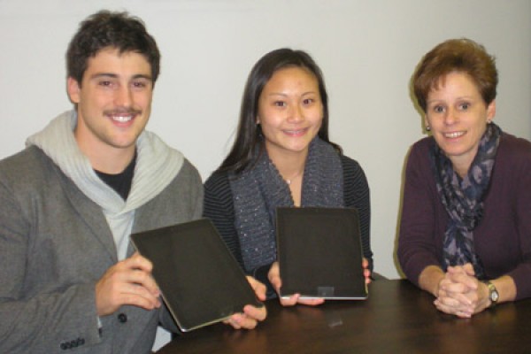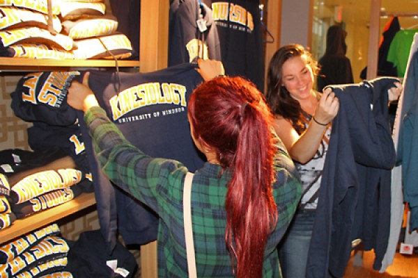 Fourth-year kinesiology students Nicole Ducharme and Jamie-Lee Newbery sort through the selection of sweatshirts in the Campus Bookstore.
