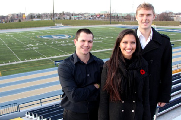 Grad students John Murray, left, Suzanne Ali and Michael Hatten conducted research to learn more about how varsity football players' knowledge and attitudes about concussions influenced their behaviour.