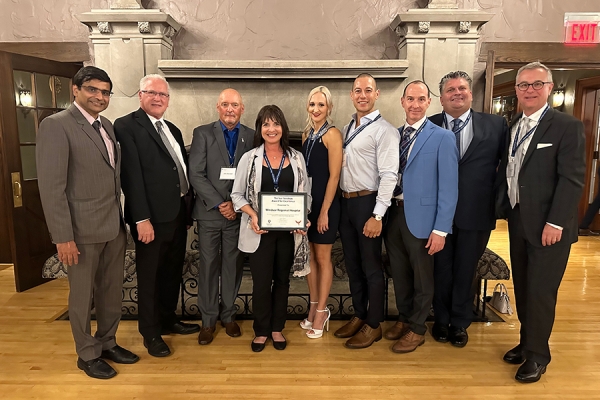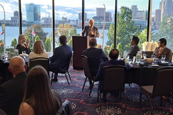 Allan Conway, former dean of the Odette School of Business, accepts the Sue Skrobiak Award for Excellence.
