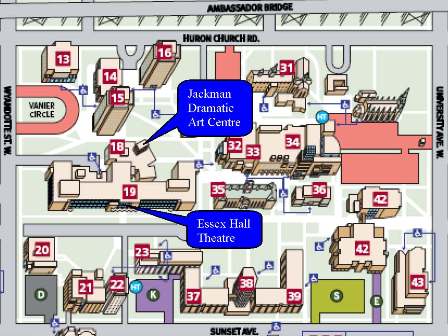 The School of Dramatic Art is located in the Jackman Dramatic Art Centre on the West side of campus, adjacent to Laurier Hall in the Residence Quad off of Wyandotte Street. The main entrance is on the West side of the building.