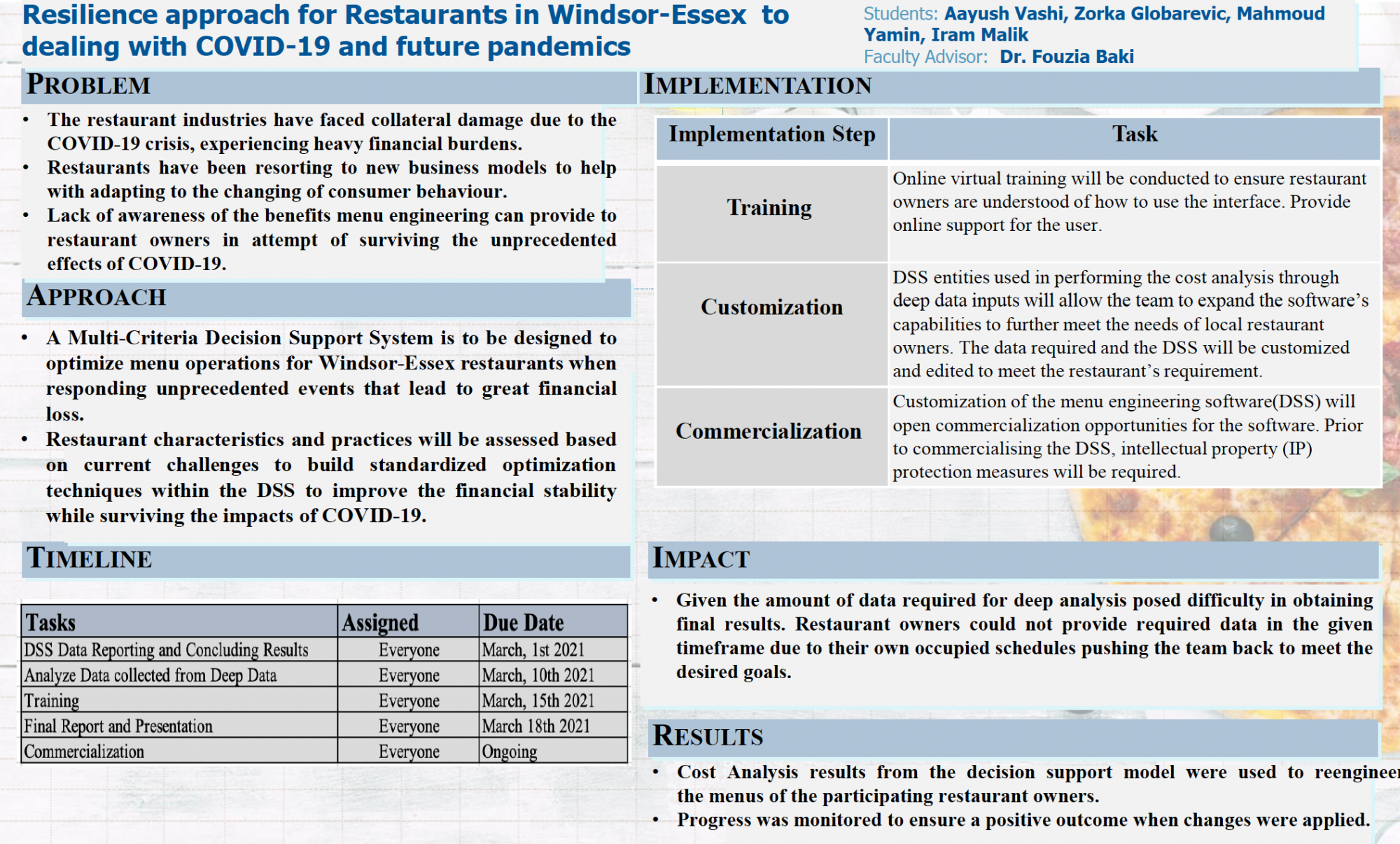 Industrial Engineering students at the University of Windsor spend the fall and winter semesters working on sponsored projects from initial concepts to final designs. Although the present COVID-19 pandemic situation has altered how we do business, these students have met the challenges head on.