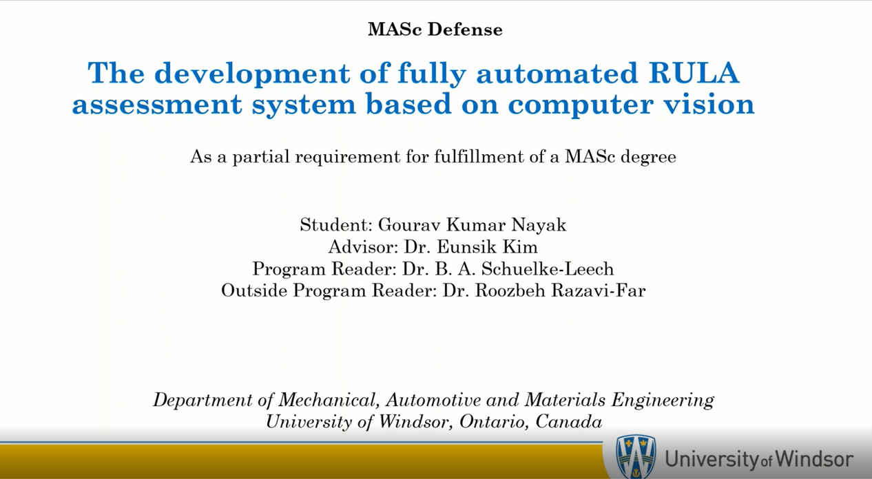 Mr. Gourav Kumar Nayak (MASc in MAME) successfully defended his MS thesis, entitled, “The development of Fully Automated RULA Assessment System based on Computer Vision". Congrats, Gourav!! Well done!!