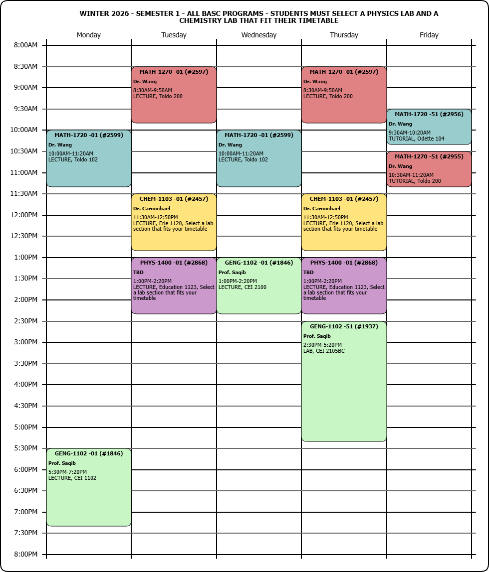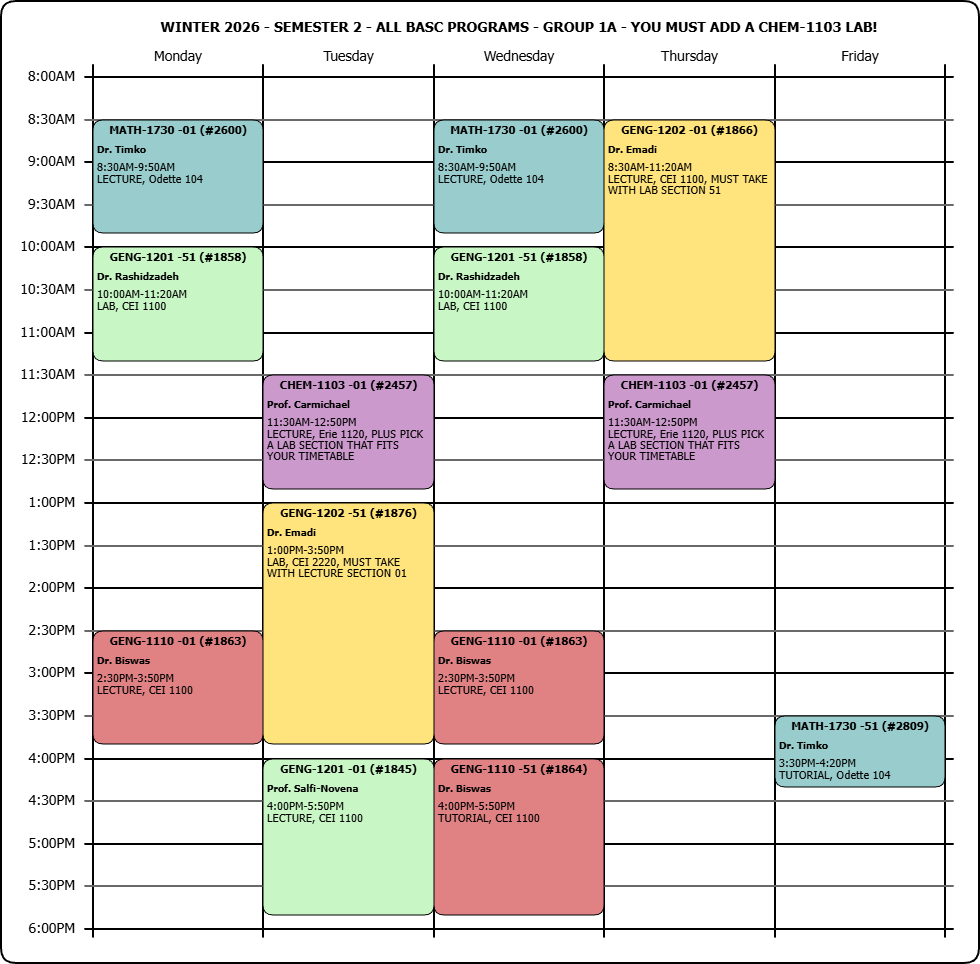 Winter 2026 – Semester 2 – All BASc Programs – Group 1A