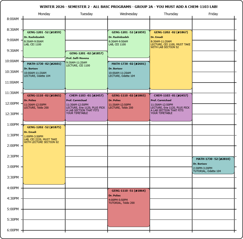 Winter 2026 – Semester 2 – All BASc Programs – Group 2A