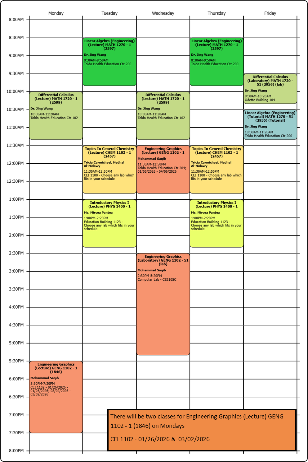 *All returning first-year undergraduate engineering students are asked to enroll in their Winter 2026 courses. Please do not deviate from the assigned groups. Additional registration information can be found on the WINONE Brightspace site. Contact WINONE @uwindsor.ca if you have questions.