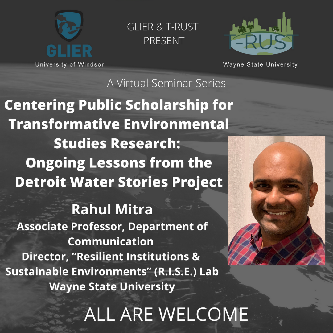 Dr. Rahul Mitra from Wayne State University will be presenting a 30-min research seminar entitled “Centering public scholarship for transformative environmental studies research” followed by a 30-min discussion focusing on early-career researchers. Abstract is attached below.