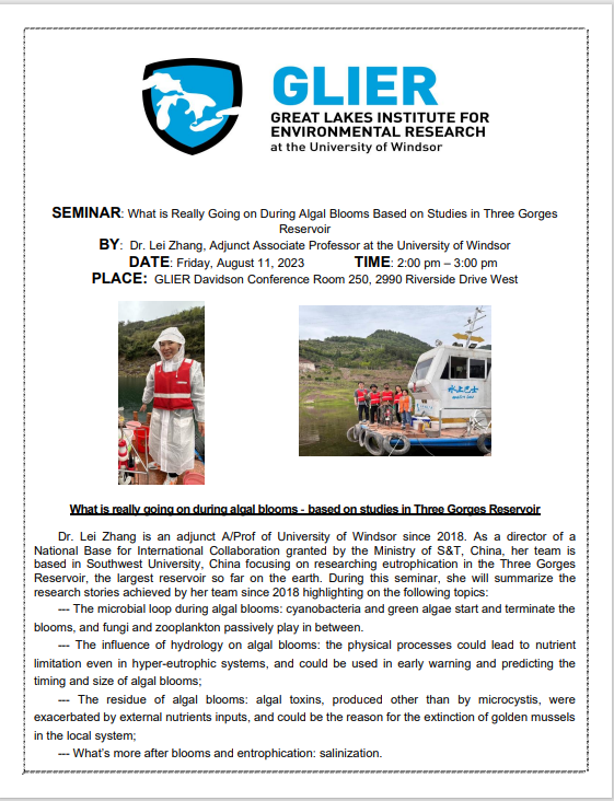 Dr. Lei Zhang Presents Seminar: What is really going on during algal blooms-based on studies in Three Gorges Reservoir