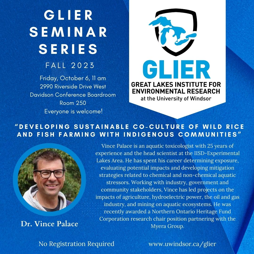 GLIER Seminar Series - Friday, October 6, 2023 at 11:00 am, 2990 Riverside Drive W., Room 250.