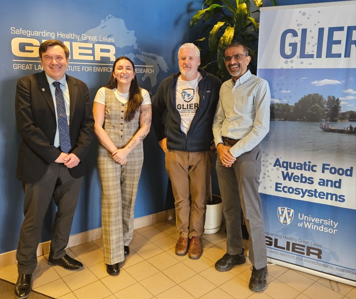 All smiles in this photo include Dr. Mike McKay (supervisor), Mackenzie Beach (MSc.), Dr. Ken Drouillard (internal reader) and Dr. Rajesh Seth (external reader).
