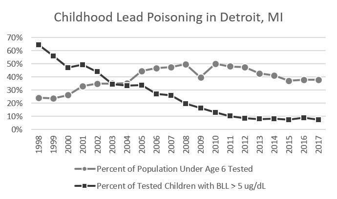 Continued research and monitoring are warranted to track this key indicator of children’s health in order to minimize childhood exposure to lead. Wayne State University’s Center for Urban Studies suggests that research should continue to focus on ways to target funding for testing, abatement, relocation, and prevention, and also to identify which programs will contribute to reductions in lead poisoning more efficiently and effectively. Further research is also warranted on human health effects of lead poisoning. Such human health research, coupled with childhood monitoring and mitigation of lead exposure, must be sustained until childhood lead exposure in Detroit is no longer considered a threat.