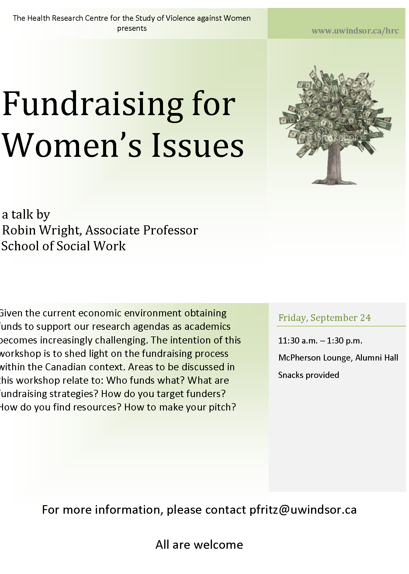 Given the current economic environment obtaining funds to support our research agendas as academics becomes increasingly challenging. The intention of this workshop is to shed light on the fundraising process within the Canadian context. Areas to be discussed in this workshop relate to: Who funds what? What are fundraising strategies? How do you target funders? How do you find resources? How to make your pitch?