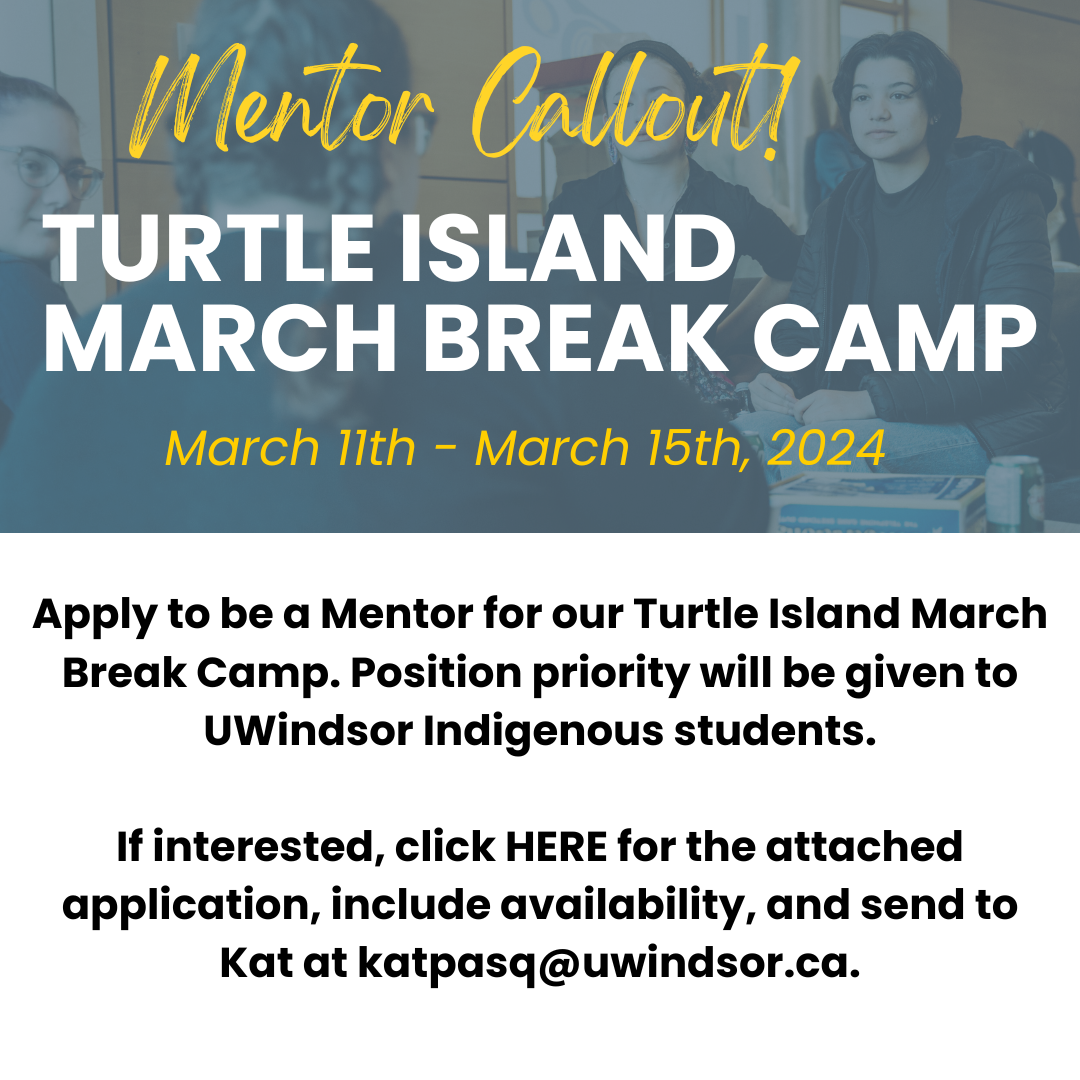 Indigenous Camp Mentors will act as mentors to Indigenous High School students (grades 9-12) in the Turtle Island March Break Camp Program. Mentors will be active participants of the March break camp programming and will be provided an honourarium based on participation. This position will allow Indigenous mentors to enhance many skills including leadership, time management, public speaking, interpersonal and teamwork.