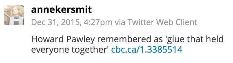 Brampton-born Pawley served as premier of Manitoba from 1981 to 1988 and was the MLA for Selkirk, Manitoba for nearly two decades. Premier Greg Selinger spoke of the impact Pawley had in Manitoba. "Throughout his life, Howard fought for equality, social justice, and the rights of all peoples. His leadership and progressive values led to changes to Manitoba's labour code to ensure that workers are paid fairly, regardless of their gender, and the inclusion of sexual orientation to Manitoba's Human Rights Code. He was also the minister responsible for the creation of Manitoba Public Insurance in 1971, which continues to provide the lowest auto insurance rates in the country. Our thoughts are with his family and friends. Manitoba lost a true champion of social justice today."