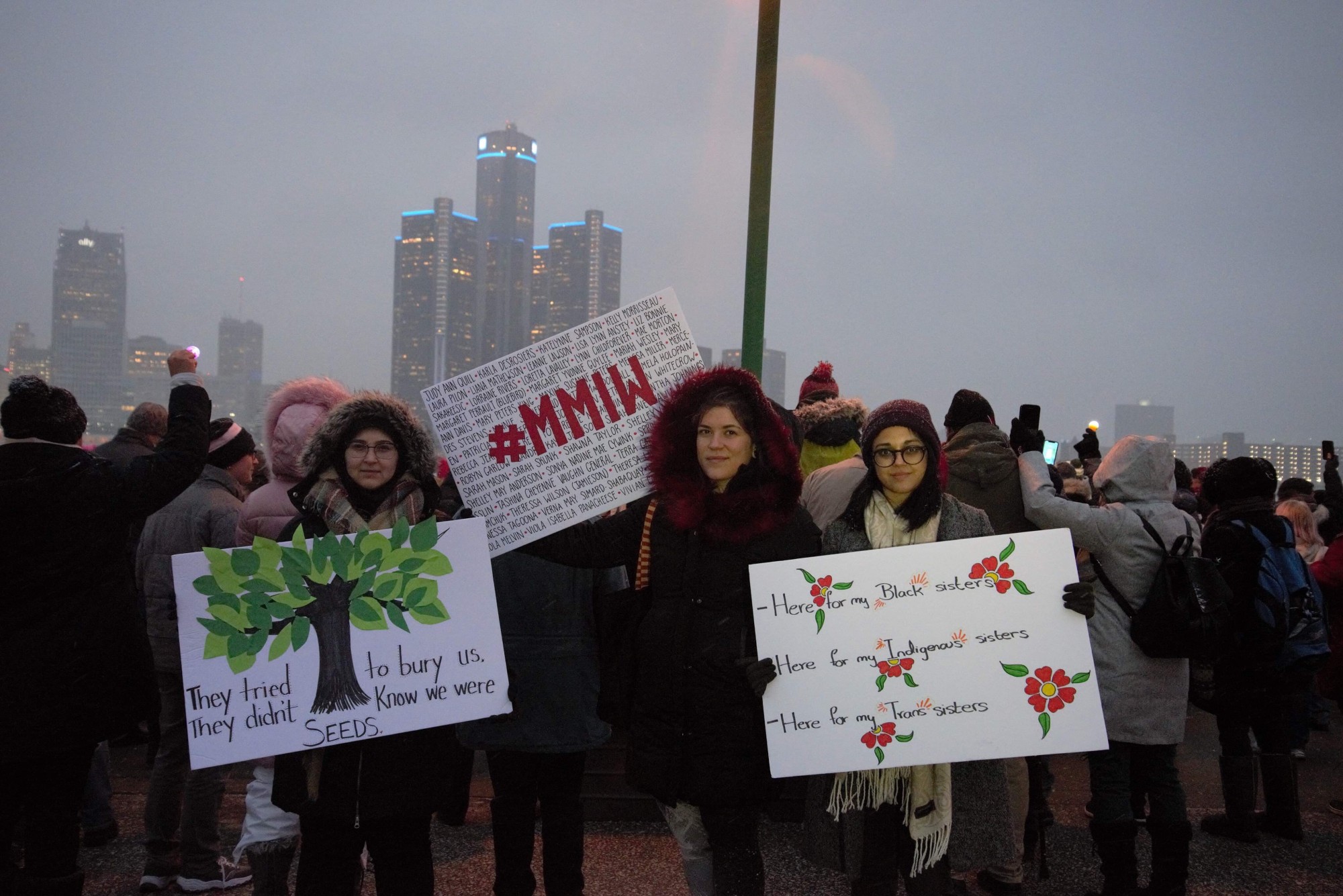In Windsor, hundreds of men and women marched from the Great Canadian Flag to Festival Plaza. Gatherers were encouraged to bring a photo of a woman who has passed away, been deported, imprisoned, gone missing, or even a woman who inspires them every day.
