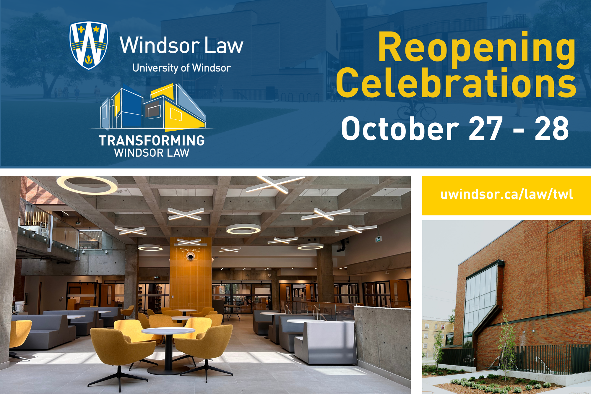 Celebrate the official reopening of the Windsor Law building with the following catered events: