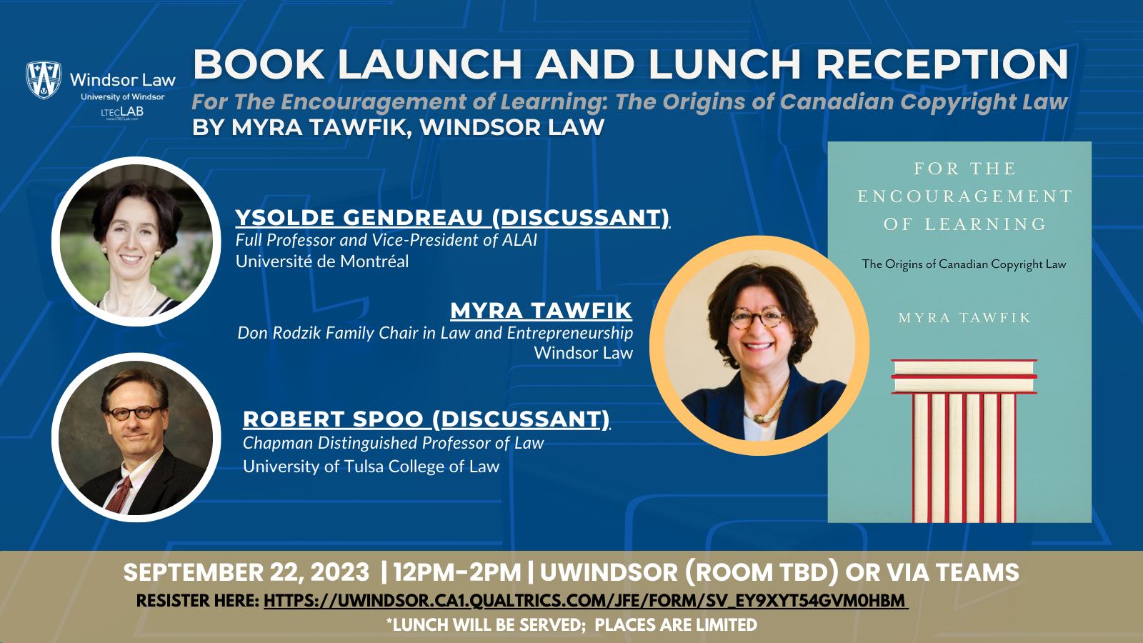 Book Launch and Lunch Reception: For The Encouragement of Learning: The Origins of Canadian Copyright Law