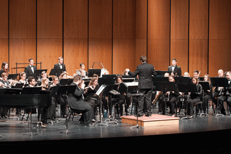 Dr. Nicholas Papador conducts the University Wind Ensemble on the Capitol Theatre's stage