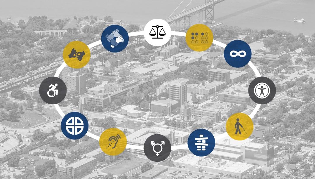 Students standing in front of Dillon Hall with text Student Self-Identification survey