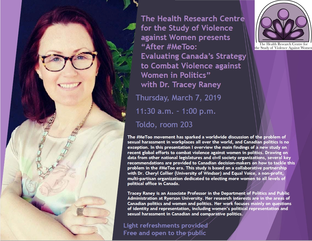 "After #MeToo: Evaluating Canada's Strategy to Combat Violence against Women in Politics" with Dr. Tracey Raney