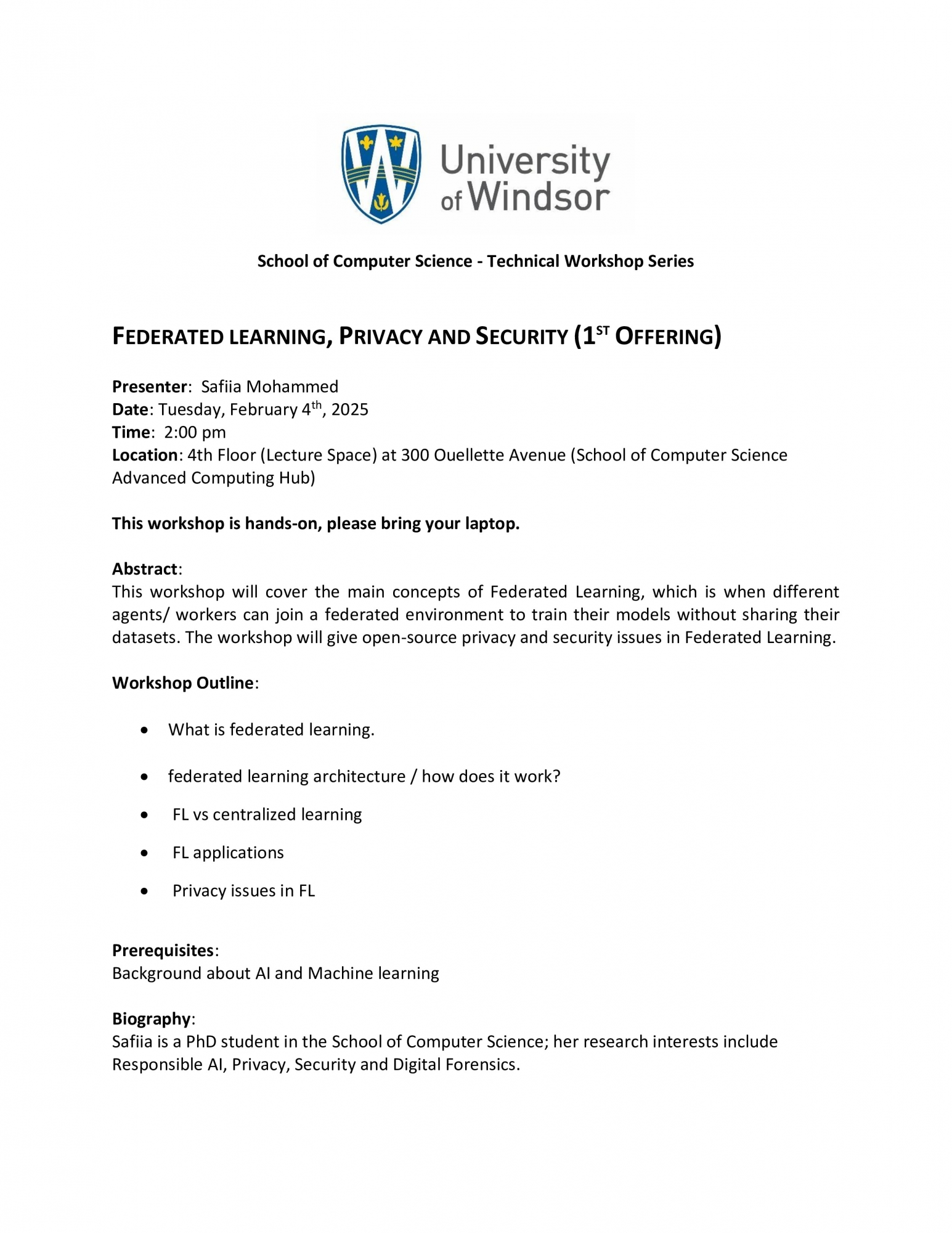 Technical Workshop - Federated Learning, Privacy & Security (1st offering) by: Safiia Mohammed