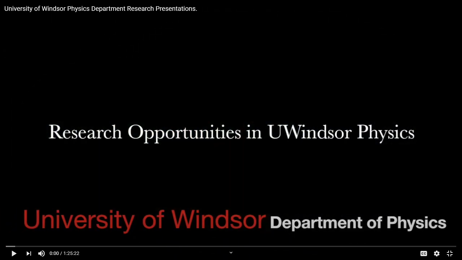 If you would like to LEARN MORE about research at UWindor Physics, please watch this YouTube video of faculty describing their research and students talking about their individual research experiences.
