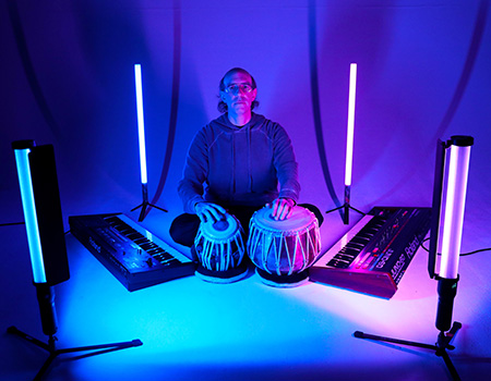 Temporal Waves is the latest project from renowned Canadian tabla player Shawn Mativetsky, transporting the tabla into a rich electronic sound world, with Shawn's tabla bathed in the neon glow of analog synthesizers. Temporal Waves is an excursion deep into aural science fiction. Montreal's Shawn Mativetsky has long been celebrated as one of Canada's leading ambassadors of the tabla, and next to his exceptional musicianship, it's his unquenchable curiosity that one most frequently hears praised. Mativetsky is an accomplished practitioner of Indian classical music, but is equally embedded in the contemporary music realm, where he has established himself as both a champion of living composers and a generous collaborator to the likes of Tim Brady, Nicole Lizée, and Dinuk Wijeratne. An avid improviser, he can also be found accompanying countless other artists across and beyond the spectrum between jazz, pop, and global traditions.