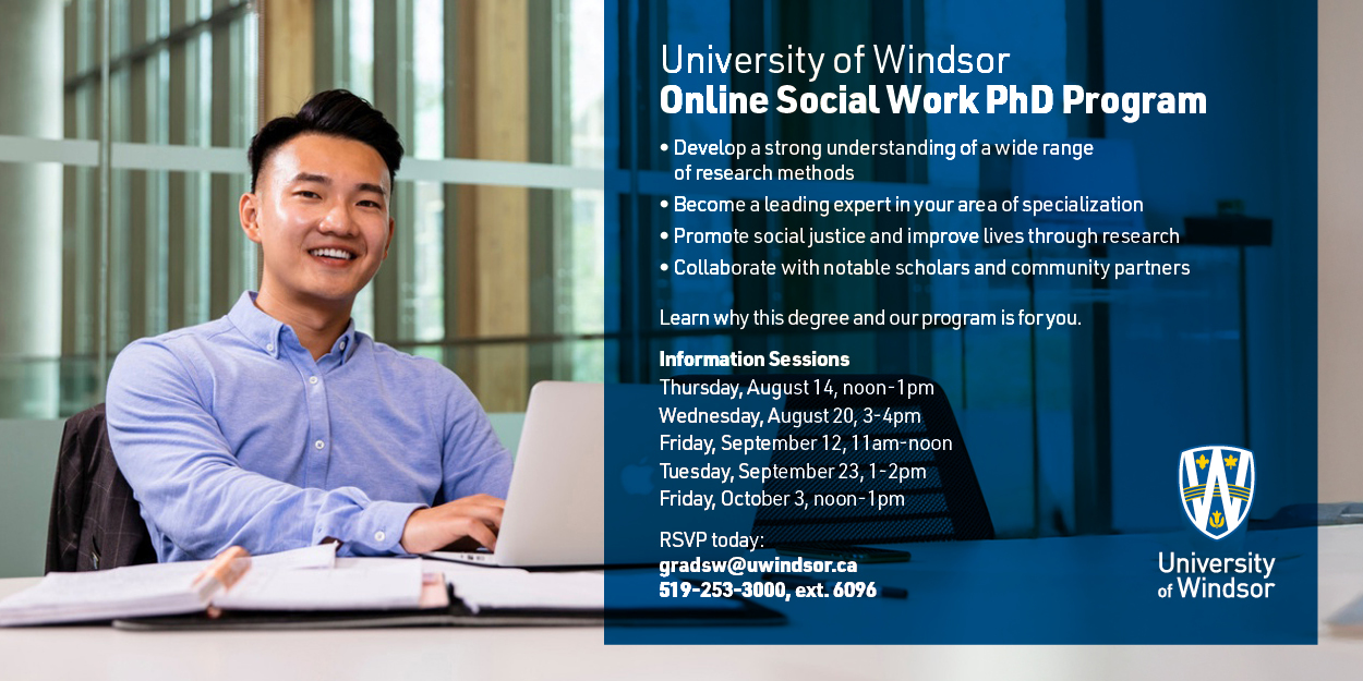 Learn why this degree and our program is for you. Please join us for one of the following information sessions. RSVP today to gradsw@uwindsor.ca