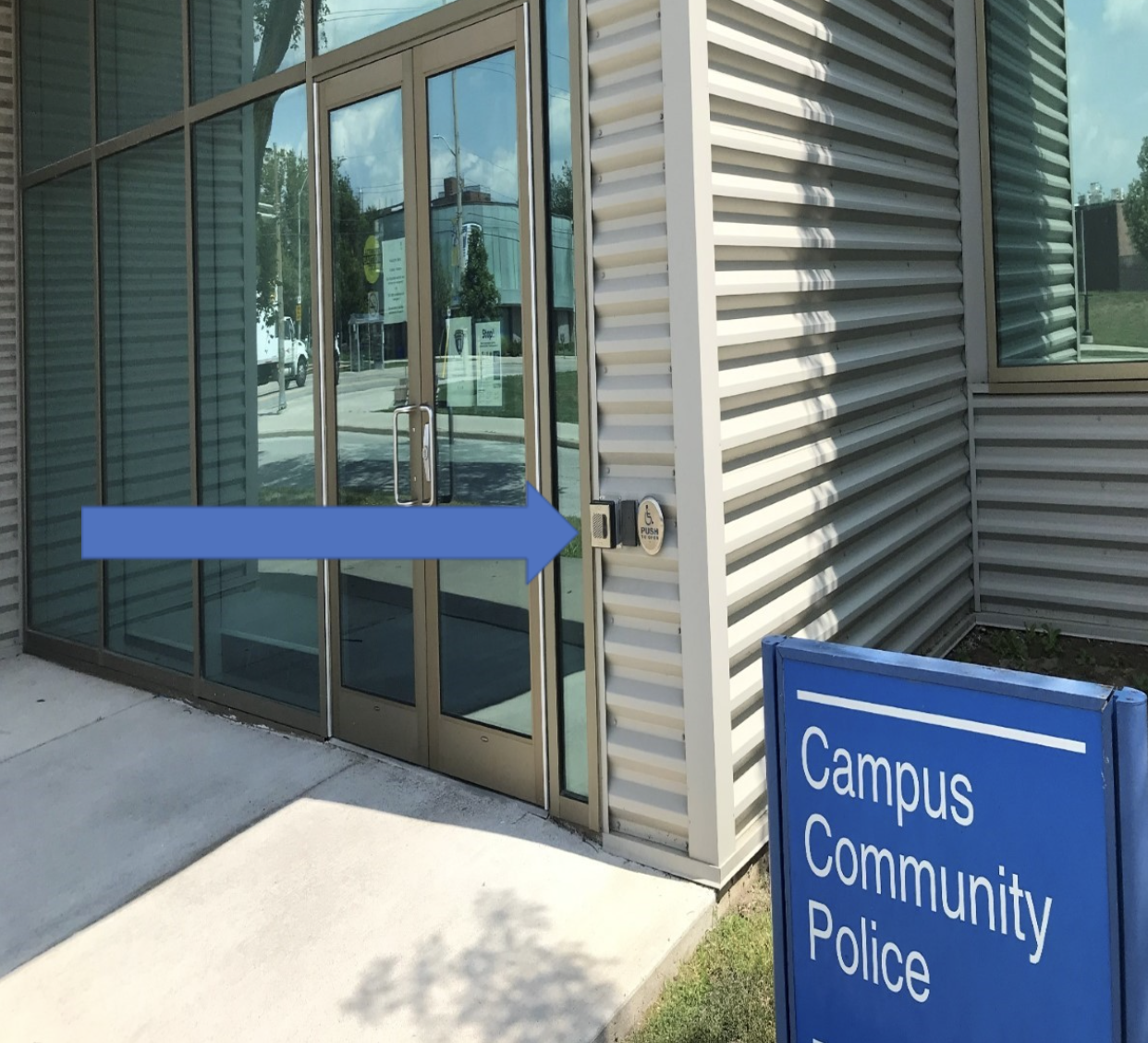If you require assistance Special Constable Service are on shift 24 hours - 7 days a week. The photo below shows the exterior of our office located at Sunset and Wyandotte. The office is always staffed. The picture shows where we also have a call box located for immediate assistance exterior of the office.