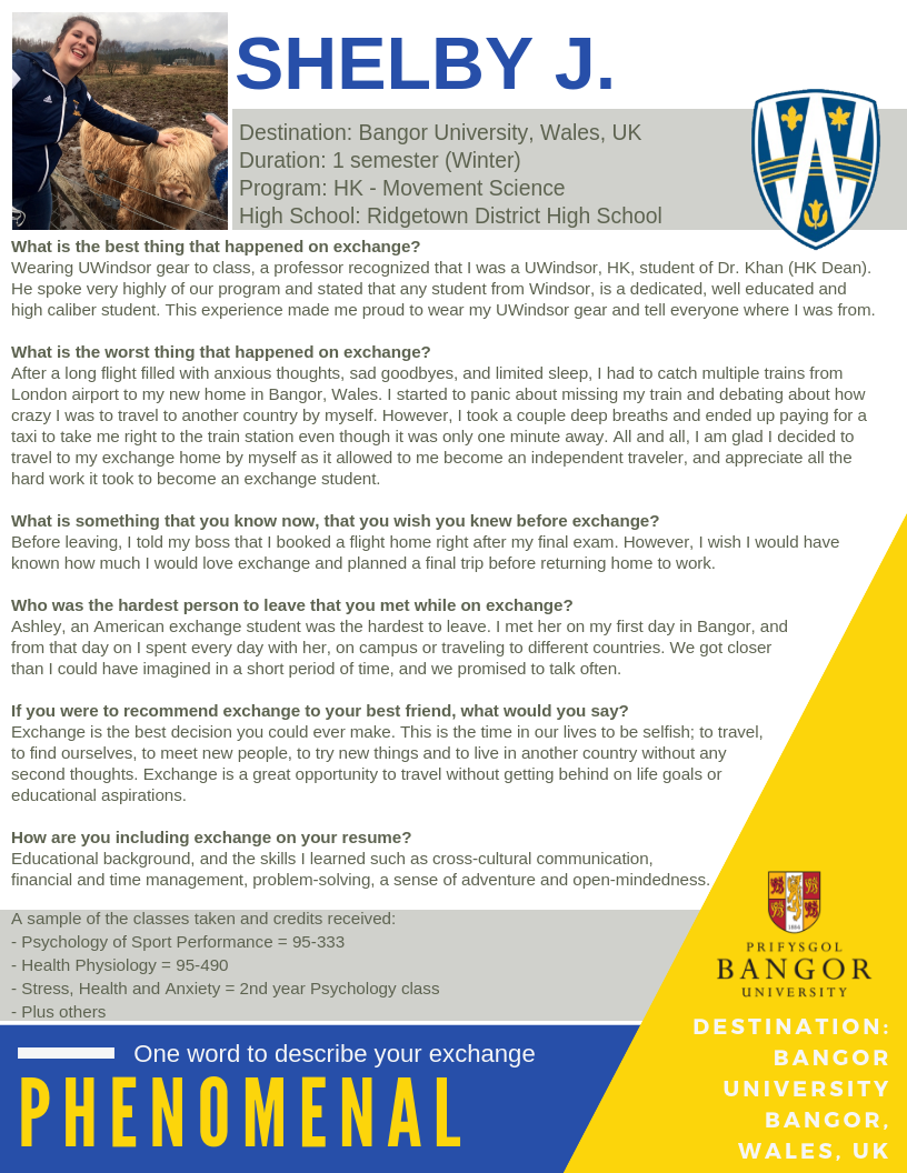 Exchange destination: Bangor University (Bangor, Wales, UK)