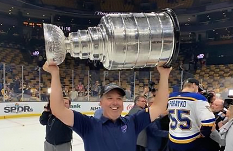 Michael Murphy BHK ’91 has been the team’s chiropractor since 1996 and shared its victory over the Boston Bruins. The Blues had been the oldest NHL team never to have won the cup.