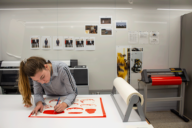 Photography works over four lab areas to provide students the opportunity for production in analogue black & white film processing and printing along with digital image processing and printing. The lighting studio further supports student production.