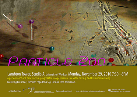 The Noiseborder Ensemble presents a complete performance of Subatomic Time for percussion with interactive audio ...go to Subatomic Time event page