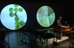 Sigi Torinus’s Klangfabrik I offers up a conversation between live performers and their pre-recorded projected counterparts. …go to Klangfabrik I page