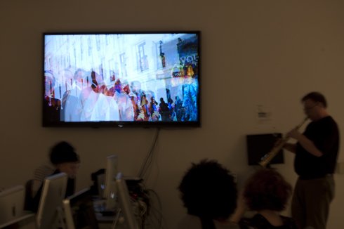 National Day (2014) is an improvisational structure for soprano saxophone with live audio processing and audiovisual triggering. The source video for this piece was recorded at a parade in Oslo celebrating Norwegian National Day, May 17, 2014. The piece attempts to give this event melancholy tone, suggesting a memory of a simpler time. Technically, the amplitude of the saxophone is mapped to the brightness of the video, such that when I play the video appears. The Max patch also follows the pitches I play and generates a MIDI-based chordal accompaniment that varies with each pitch and according to a few simple rules. National Day was put together during a stay at the Residency Eina Danz about an hour north of Oslo; the video documentation is from the performance I gave at the end of the residency. Many thanks to Ella Fiskum and Sudesh Adhana for their support with this project.